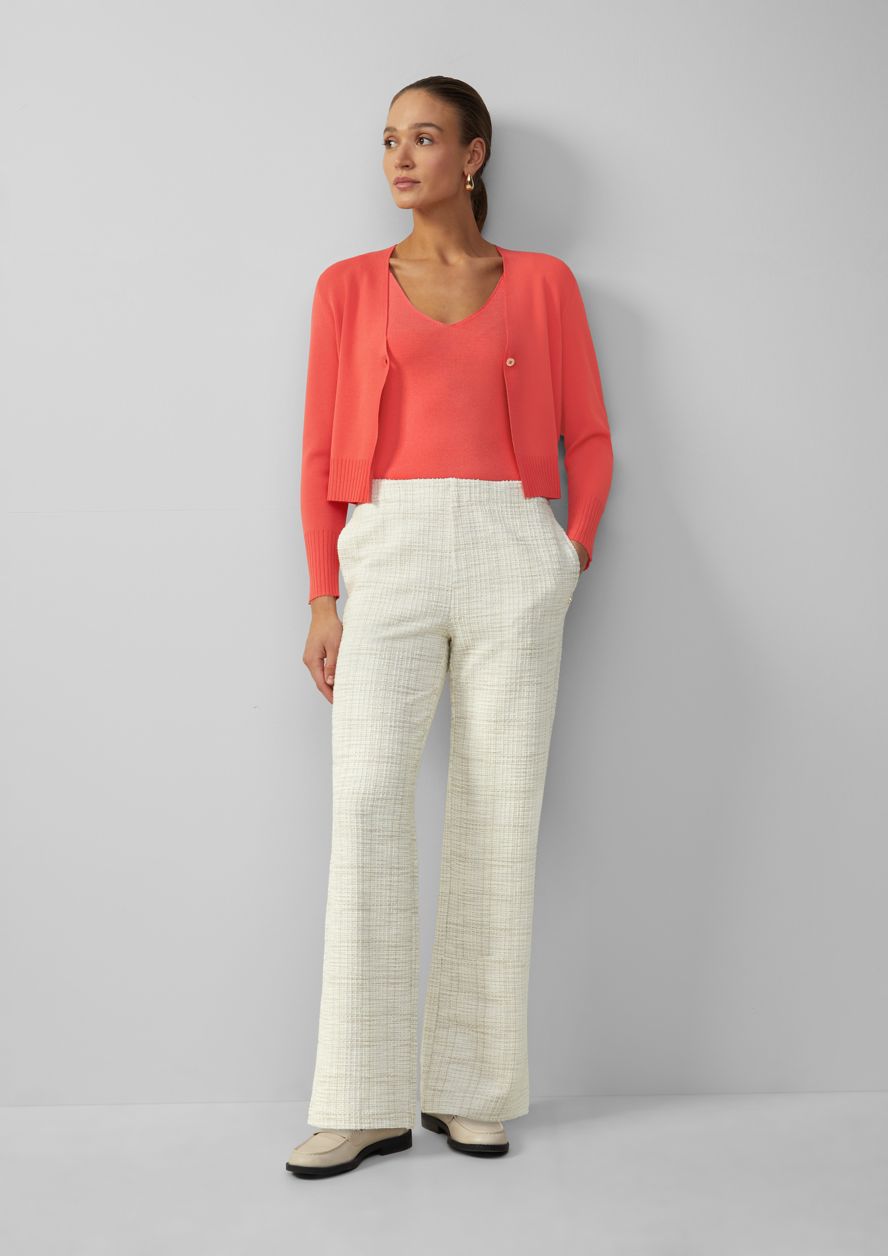 Élégant et sophistiqué, ce haut sans manches à la coupe ajustée, en viscose finement tricotée, est votre compagnon polyvalent. Parfait pour une tenue décontractée ou professionnelle, il met en valeur votre silhouette avec une élégance moderne. Appartenant à la ligne s.Oliver BLACK LABEL, il est conçu pour les femmes sûres d'elles qui passent sans effort du jour à la nuit avec un style impeccable.