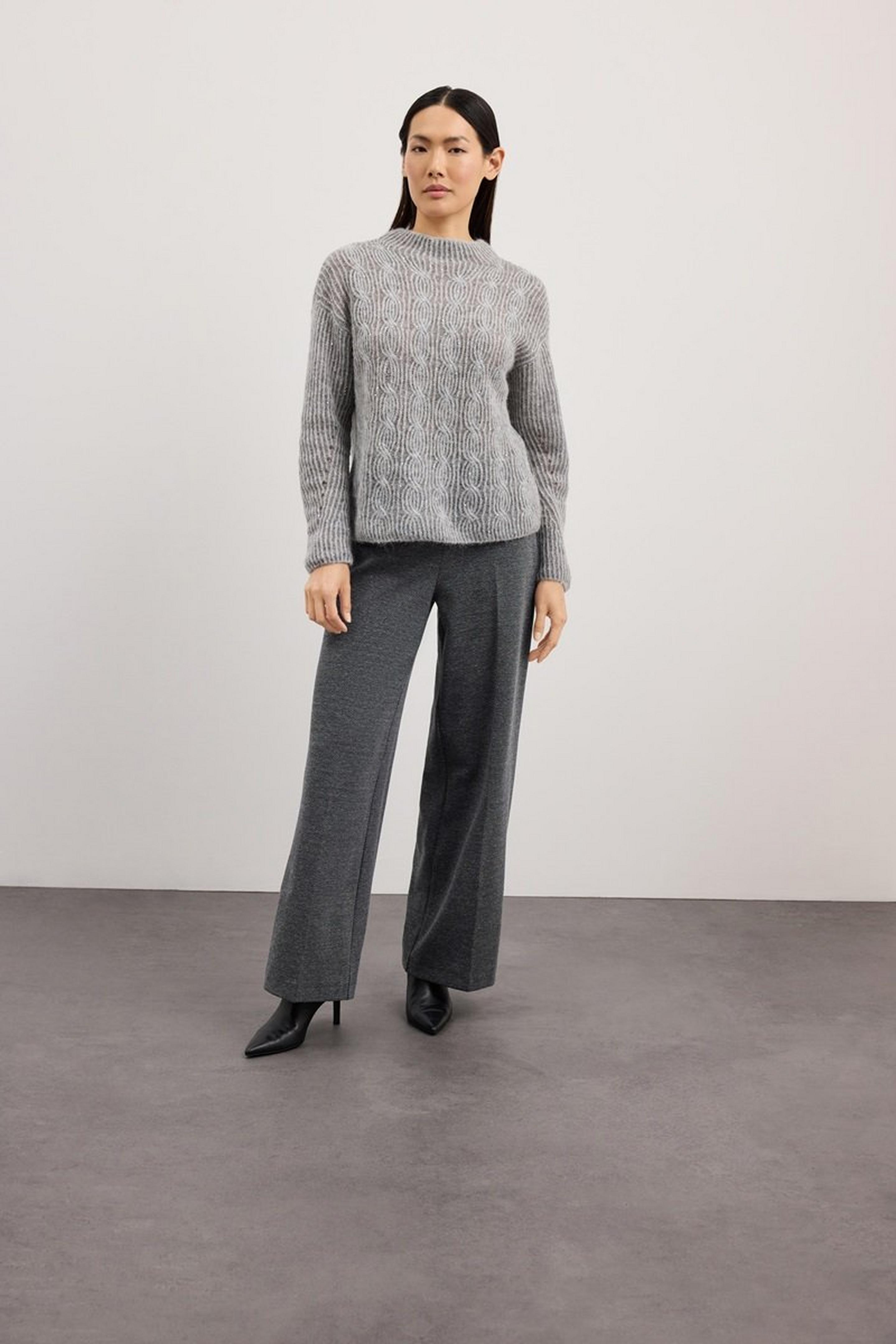 Weiche Materialien definieren die neuen Business Styles. Ein feiner Strickpullover zur weit geschnittenen Hose bringt Struktur, ohne einzuengen. Die Silhouette bleibt klar, der Look entspannt. Genau diese Balance macht Workwear 2026 so alltagstauglich.